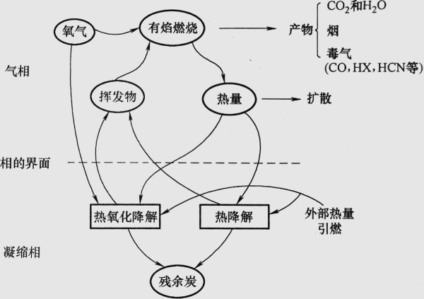 塑料的燃燒過程是一個非常激烈復(fù)雜的熱氧化反應(yīng),具有冒濃煙或熾烈火焰的特征。塑料燃燒的一般過程可分為5個基本階段。