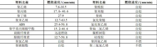 影響塑料燃燒的因素很多,包括作為內(nèi)因的聚合物燃燒特性和作為外因的燃燒環(huán)境條件。在燃燒環(huán)境條件相同的情況下,則主要取決于聚合物的燃燒特性,包括化學(xué)組成和結(jié)構(gòu)、比熱容、熱導(dǎo)率、分解溫度、燃燒熱、閃點和自燃點、火焰溫度、極限氧指數(shù)以及燃燒速度等。