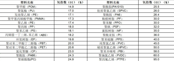能維持聚合物燃燒的混合氣體中氧氣的小體積分?jǐn)?shù),稱為聚合物的極限氧指數(shù)(LOI),簡稱氧指數(shù)(OI)。氧指數(shù)是衡量聚合物材料是否燃燒的重要指標(biāo)。由于空氣中氧氣的體積分?jǐn)?shù)為20.9%,所以,氧指數(shù)小于21%的聚合物,一般可在空氣中被點燃。