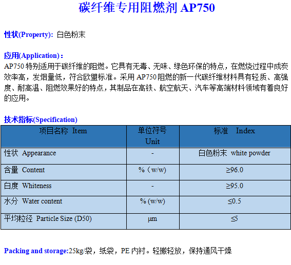 碳纖維專用阻燃劑AP750 2022-5-10 本文被閱讀 2447 次