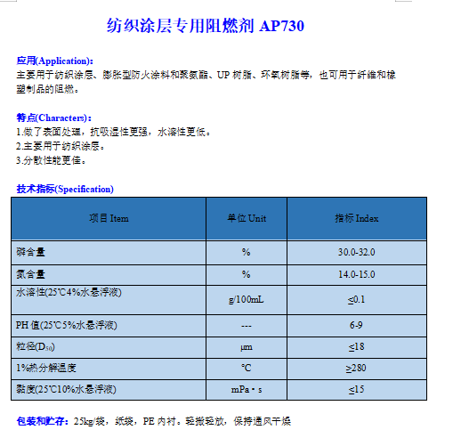 紡織品涂層專用阻燃劑AP730 2022-5-26 本文被閱讀 2506 次